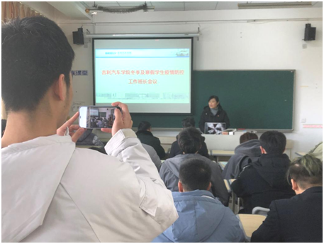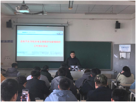为进一步落实疫情防控机制,扎实做好学生疫情防控和筛查等工作,吉利汽车学院于12月30日召集全院班长召开了冬季及寒假学生疫情防控工作会议,会议由何文亮主持,学工办主任张园园参加会议,会议采用线上线下相结合的形式,通过钉钉直播更快更详细地将会议内容传达给校外实习的同学们,做到会议精神传达的全覆盖。