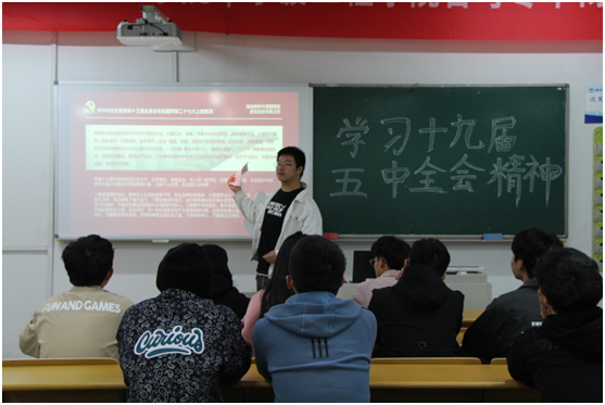 集中学习活动由团总支学生会主席团主持,全体学生干部参加。主席团执行主席认真向大家分享了党的第十九届五中全会会议公报及《中共中央关于制定国民经济和社会发展第十四个五年规划和二〇三五年远景目标的建议》两个重要文件的主要内容,并谈了自己的学习体会。随后参会学生干部结合学习心得和工作实际作了交流发言。大家表示,通过本次集中学习活动,进一步提升了自身的思想认识,更加明确了作为一名团干部的职责和使命。“十四五”规划是整个国家社会发展进步的宏伟目标,学生组织的发展提升也需要有科学的谋划和系统性的思考,为实现“十四五”规划和2035年远景目标注入自己的青春正能量。