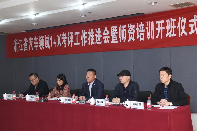 11月17日,浙江省汽车领域1+X证书制度试点工作推进会暨师资培训开班仪式于在我校举行,省教育厅职成教教研室教研员、项目领导庞志康,浙江省汽车领域1+x证书专家组专家刘美灵,学校副校长陈加明、吉利汽车学院院长邵立东、副书记张理剑及来自浙江省37所院校的90余名领导与教师参加会议。