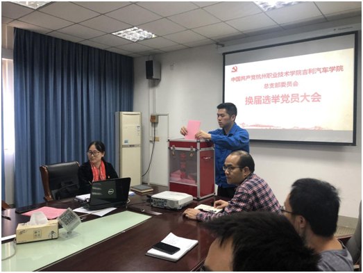 10月28日下午,中共杭州职业技术学院吉利汽车学院党总支召开换届选举大会,选举产生了新一届总支部委员会。中共杭州职业技术学院吉利汽车学院党总支书记邵立东作工作报告,中共杭州职业技术学院吉利汽车学院党总支副书记张理剑主持会议。
