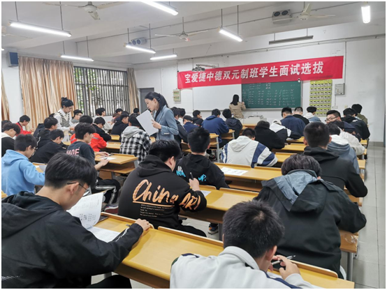 本次选拔工作包括两个环节,首先是笔试环节,通过书面作答,着重考查学生的逻辑、思维判断能力;其次是面试环节,通过回答面试官的提问以及面对面交流,着重考查学生的职业意愿和学生的综合素质。面试选拔团对本次参加选拔的学生的表现给予了较高的评价,最终将通过综合评价后确定入选首届“双元制”班的学生名单。