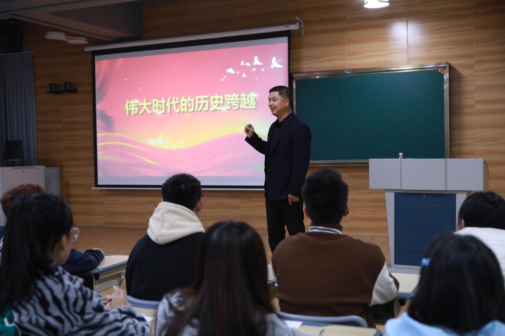 为进一步加强学生爱国爱党情怀,教育引导广大学生深刻认识在以习近平同志为核心的党中央坚强领导下新时代10年的伟大变革,深刻把握当前国际国内形势,深化认识新时代坚持和发展中国特色社会主义的重大理论和实践问题。11月14日晚,党委委员、副校长程利群在吉利汽车学院2318教室以《伟大时代的历史跨越》为题,开讲了本学期专题思政课。