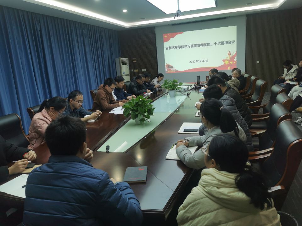 12月7日下午,吉利汽车学院在2409会议室组织全体教职工集中学习党的二十大精神,党总支书记、院长邵立东,副书记张理剑,副院长林辉及全院教职工参加,学习会由邵立东主持。
