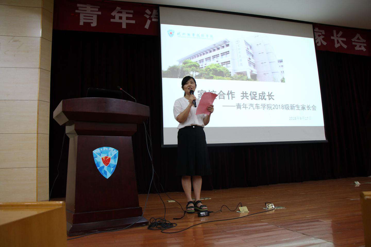 九月果香,丹桂飘扬。9月17日,377名00后“小萌新”们在老师、志愿者的热情接待下走进青年汽车学院。为了让家长更好地了解孩子的大学生活,做好家校互动,青年汽车学院在报到当天下午举行2018级新生家长会,百余名学生家长参加。青年汽车学院党总支副书记龙艳主讲,学工办负责人张园园主持会议。