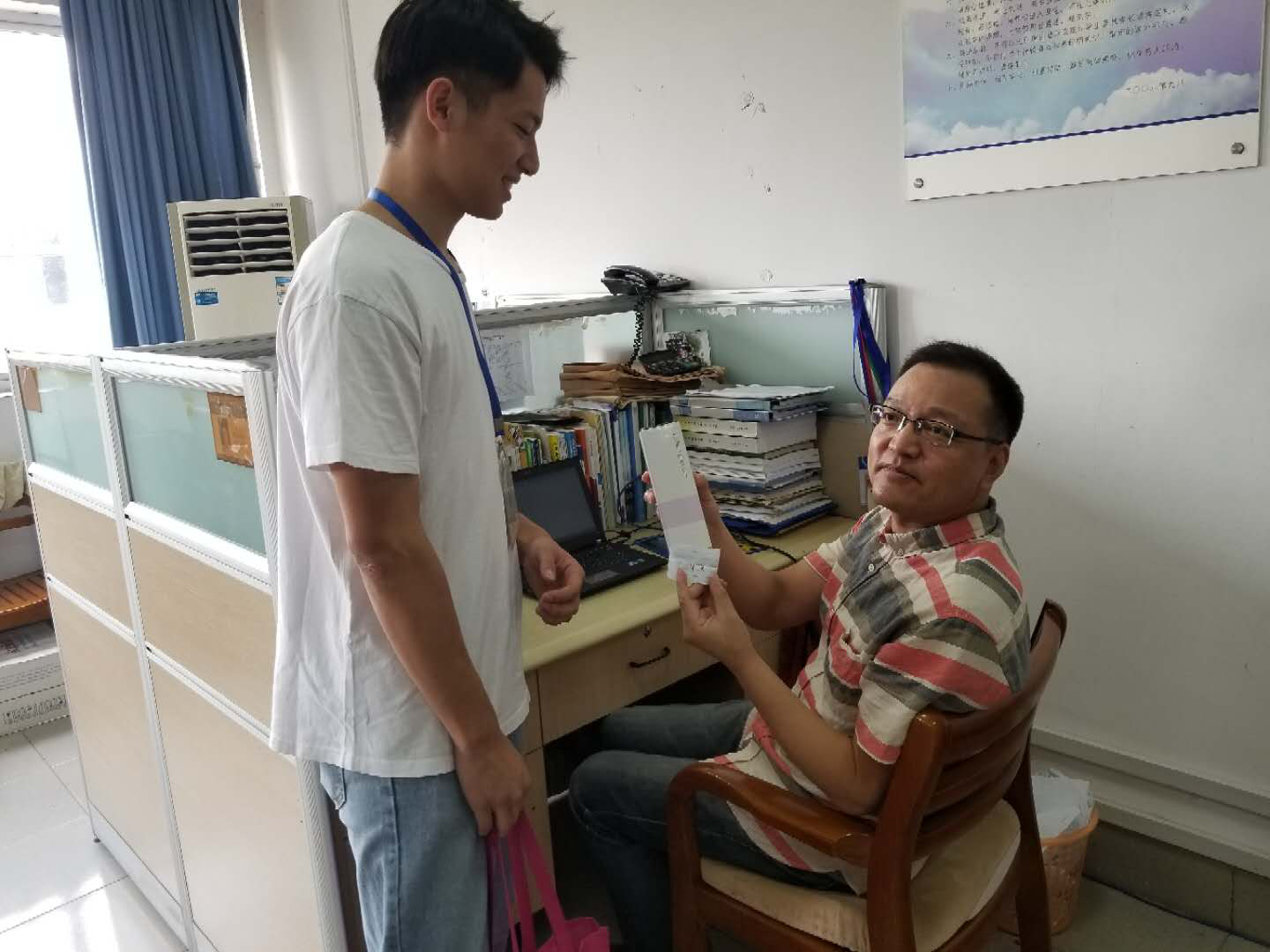 当老师们踏进教学楼,伴随着一声声的:“老师,节日快乐!老师,您辛苦了!”学生会的干部们逐一将鲜花与贺卡送给每一位老师,并为老师们送上了神秘大礼,老师们的脸上洋溢起了喜悦笑容。
