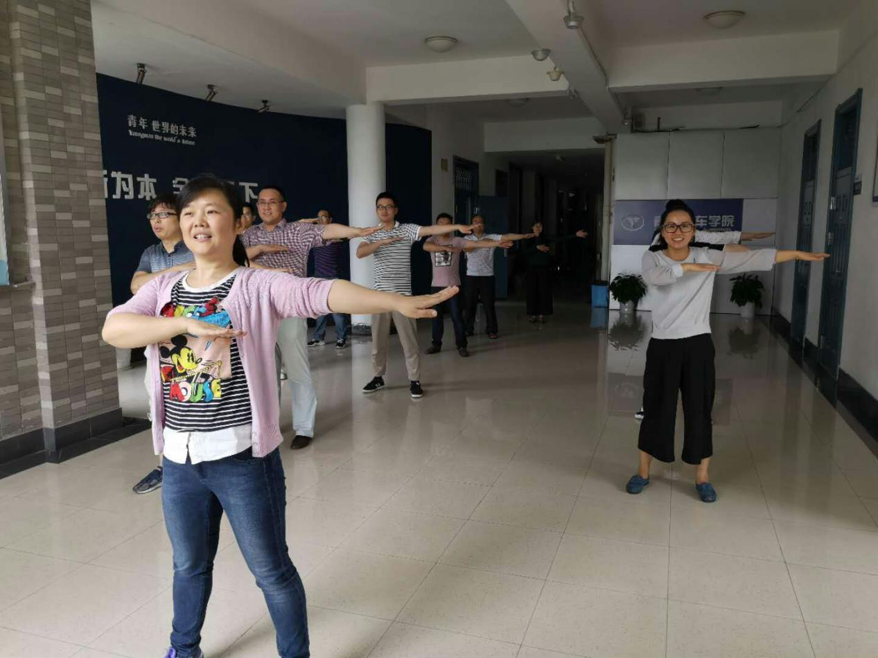 为了丰富学院教职工文体生活,积极引导教职工科学健身,以健康的身体和充沛的精力投入到工作与生活中,5月2日周三中午12:30,青年汽车学院分公会在二号教学楼4楼大厅开展“动在阳春”之教职工学习第九套广播操健身活动。