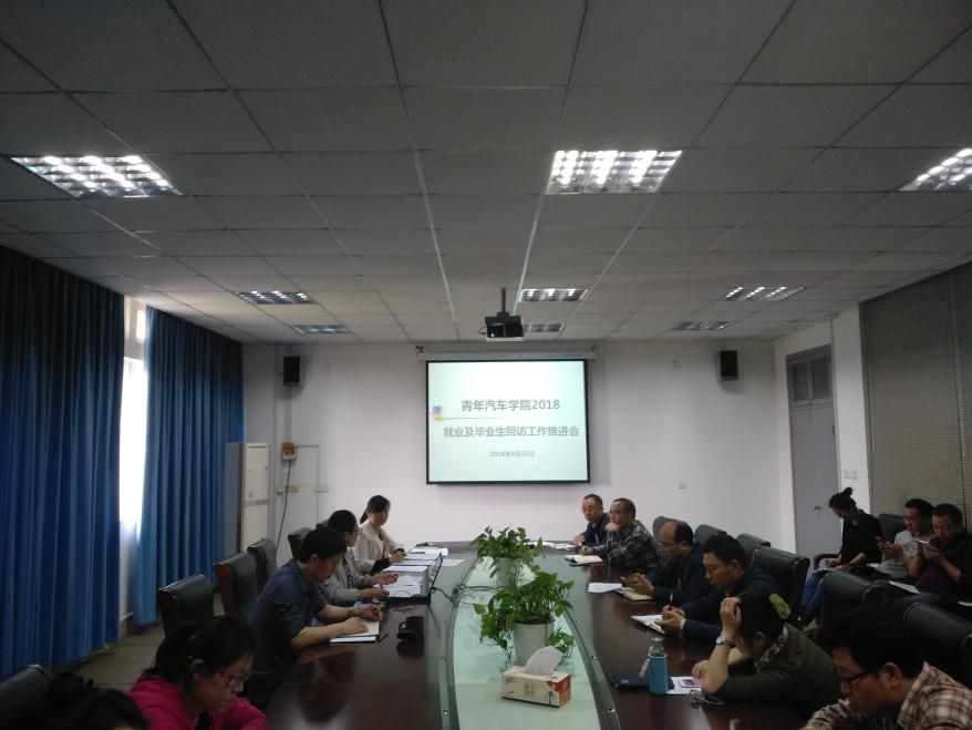 4月25日下午,青年汽车学院召开会议专题部署2018届毕业生就业和往届毕业生回访推进工作。参加会议的有青年汽车学院院长邵立东、党总支副书记龙艳以及分院各部门、各专业负责人和毕业班班主任。