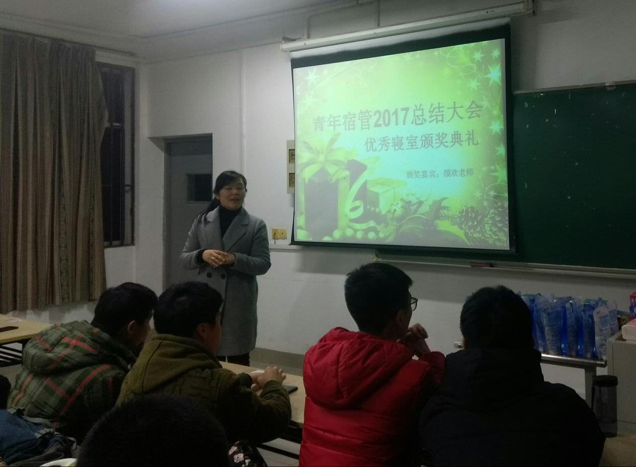 12月26日,青年汽车学院在2118教室举行寝室学生管理团队总结大会暨优秀寝室颁奖典礼。学院学工办、寝室学生管理团队成员和优秀寝室成员代表共三十余人参加大会。