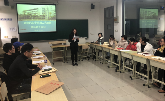 12月6日,青年汽车学院第二党支部党员转正大会在2509教室召开。大会由支部书记张园园主持,青年汽车学院党总支副书记龙艳、党员教师和预备党员参加了会议。