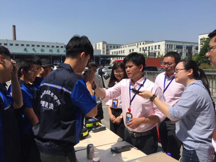 汽车检测与维修技术专业中德诺浩班全体学生受邀参加此次活动,开幕式上同学们认真听取专家关于计量检测的发展及重要性的报告,并在现场体验计量检测仪器。