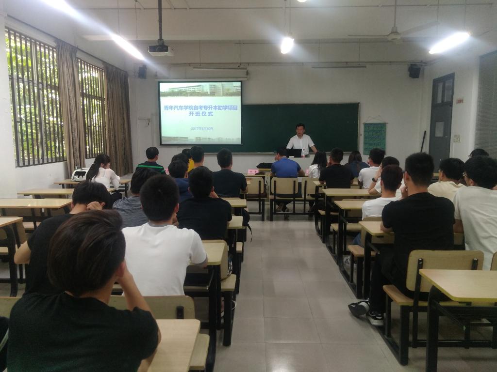 青年汽车学院院长邵立东向参加开班仪式的学生提出了殷切希望,希望同学们要充满信心,提早规划,认真学习,通过自考本科项目的学习提升综合素养和能力,为自己未来的职业生涯开辟新的道路。他同时强调,分院将为自考本科班配备兼职班主任和辅导老师,为同学们提供课程学习方面的帮助与支持,同学们也要加强自主学习能力,以便顺利完成本科学业,早日毕业。