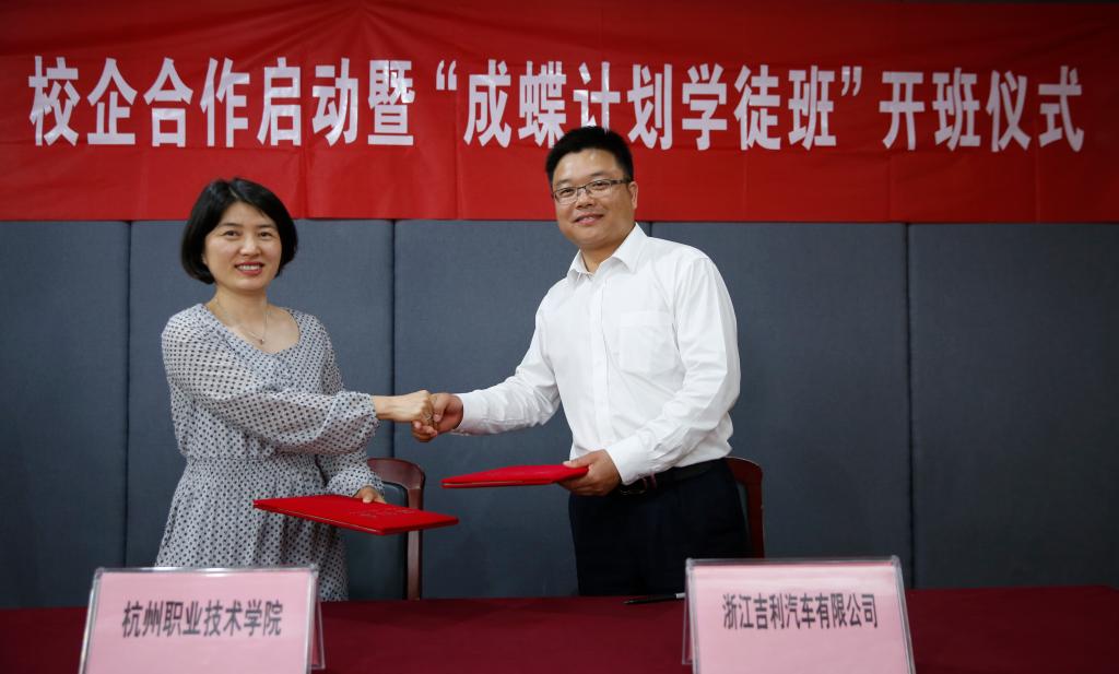 5月10日下午,杭州职业技术学院—浙江吉利汽车有限公司校企合作启动暨“成蝶计划学徒制班”开班仪式在第三会议室隆重举行。