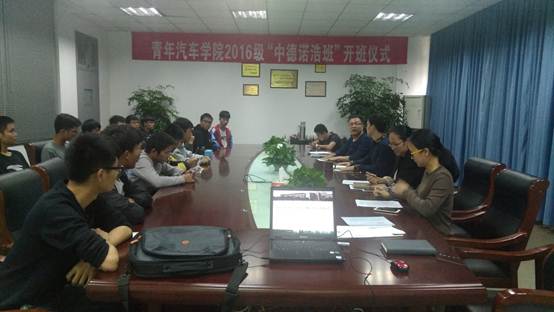 10月26日下午,经过前期的项目宣讲、学生自主报名和面试考核,首届“中德诺浩班”开班仪式在2409会议室正式举行。青年汽车学院院长邵立东、党总支副书记龙艳、汽检专业负责人邱英杰、综合办和教科办负责人及20名“中德诺浩班”学生参加开班仪式,仪式由邱英杰主持。