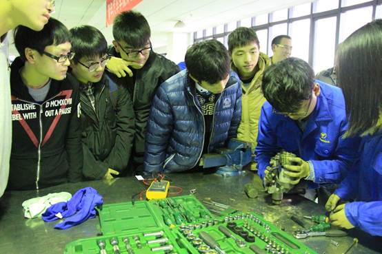 师生同台竞技,比比看谁更牛。12月9日下午,由青年汽车学院分工会举办的青年汽车学院“走进学生”之青年教师师生技能比武活动在公共实训基地汽车发动机实训中心举行。学院副书记张崇生、副院长龙艳现场指导,教师代表以及二十位学生代表参加了活动观摩。
