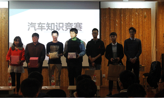 本次活动精彩热情,场上选手斗智斗勇,场下观众也毫不示弱为自己班级代表队加油鼓劲。通过一番精彩的选题答题,最后脱颖而出荣获第一名的是汽检1541班级代表队,最后汽车爱好者协会会长为竞赛获奖队伍颁发了奖品。