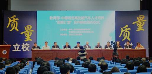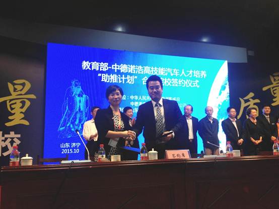 教育部一中德诺浩高技能汽车人才培养"助推计划"第二批合作院校项目启动与签约仪式于2015年10月19日在山东理工职业学院举行。教育部职业教育与成人教育司白汉刚处长,中国职业技术教育学会刘占山秘书长等领导出席签约仪式。来自国家教育部、国家职业教育学会、合作签约的全国10所高职院校和30所中职学校,共600余人参加了大会。