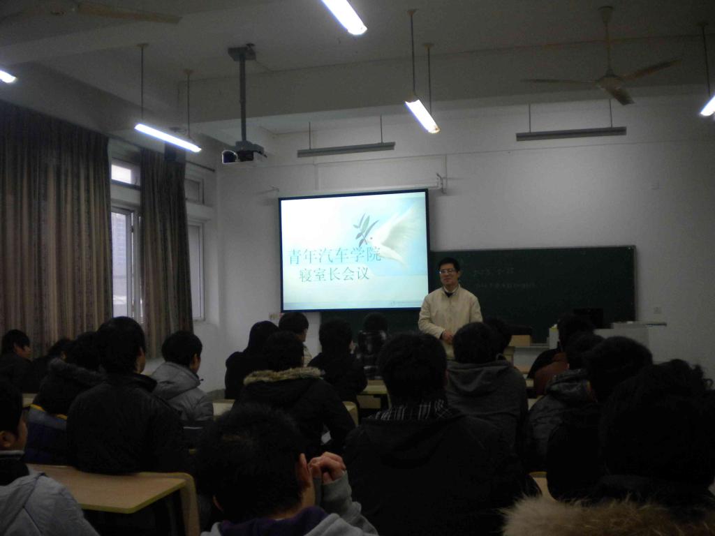 迎着第九届寝室设计大赛和特色楼评比的举行,11月17日下午4时30分,我院在第二教学楼2414召开了青年汽车学院第一次寝室长会议。会议由辅导员杨老师主持,周佳良副院长和公寓辅导员杨敬江老师与会。