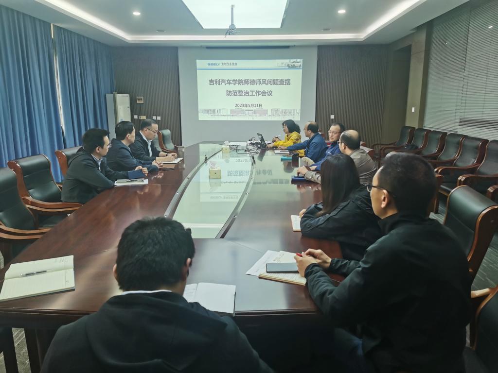 为进一步推进学院师德师风建设工作,坚持立德树人根本任务,5月11日,吉利汽车学院在2409会议室召开师德师风会议,学院院长邵立东、副书记张理剑、副院长林辉及各部门负责人参加会议,会议由张理剑主持。