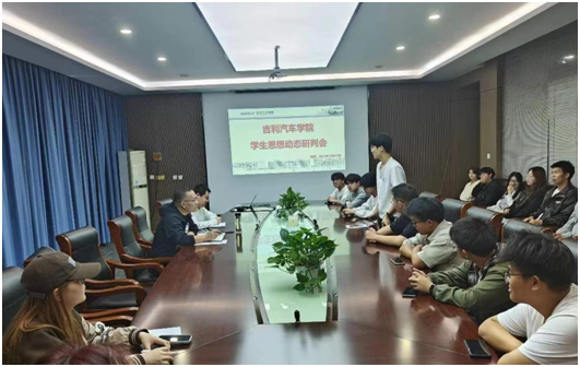 为及时了解学生思想动态,进一步加强吉利汽车学院的思想意识形态工作,10月25日下午,吉利汽车学院在2409召开学生思想动态研判座谈会。吉利汽车学院党总支副书记张理剑,辅导员、大一学生代表参加本次会议。