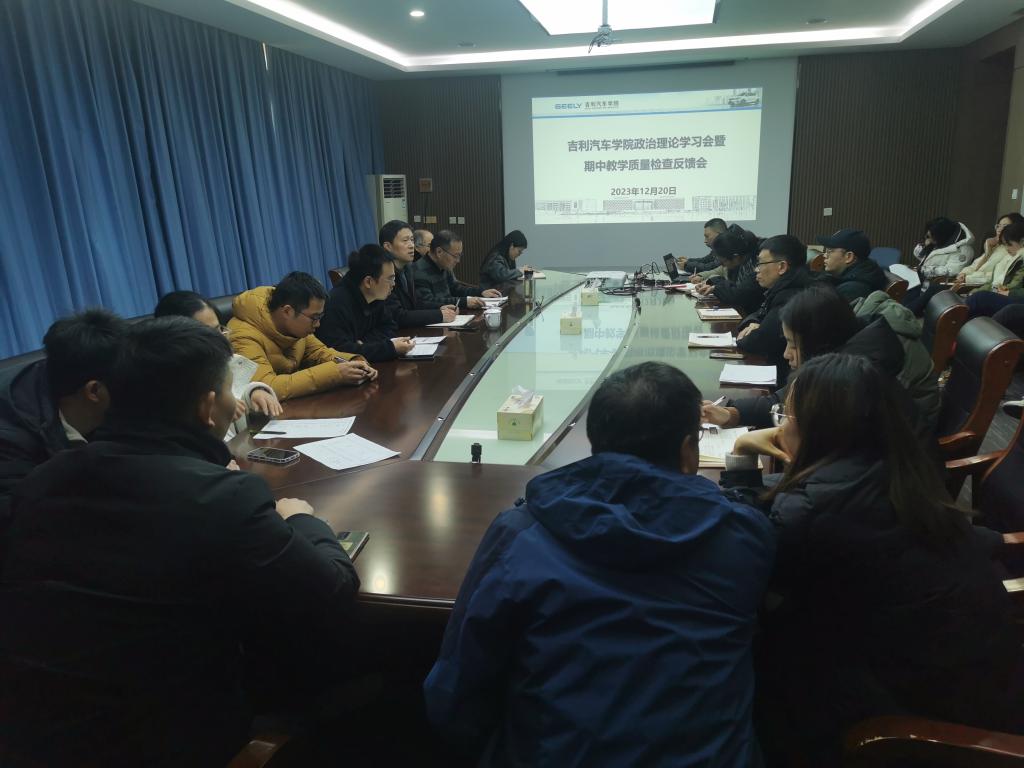 12月20日下午,吉利汽车学院在2409会议室召开了教职工政治理论学习会暨期中教学质量检查结果反馈会,党总支书记兼执行院长邵立东、副书记张理剑、副院长林辉和全体教职工参加会议,会议由邵立东主持。