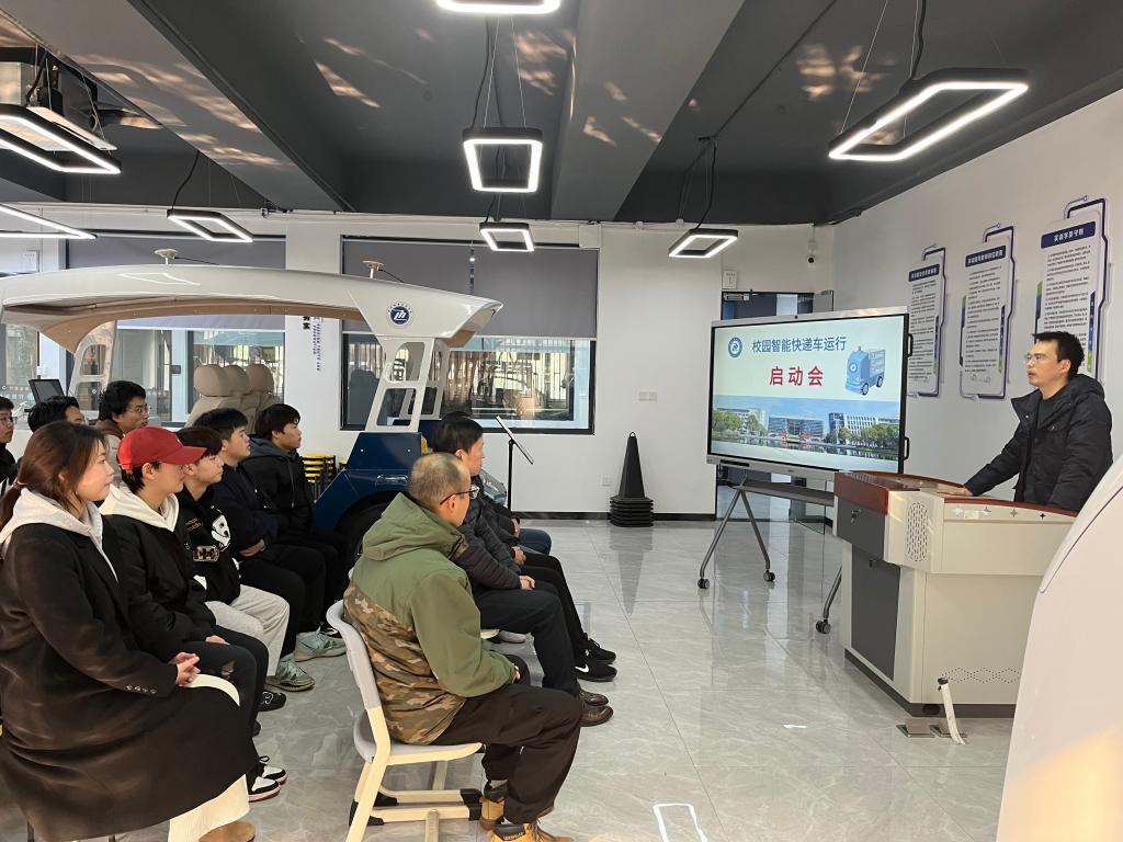 12月28日下午,吉利汽车学院在2116召开“吉智送”无人驾驶快递车启用仪式,吉利汽车学院党总支书记、院长邵立东,副院长林辉,智能网联汽车专业及实训办负责人、技术指导教师及智能网联汽车专业同学参加了启用仪式,仪式由林辉主持。