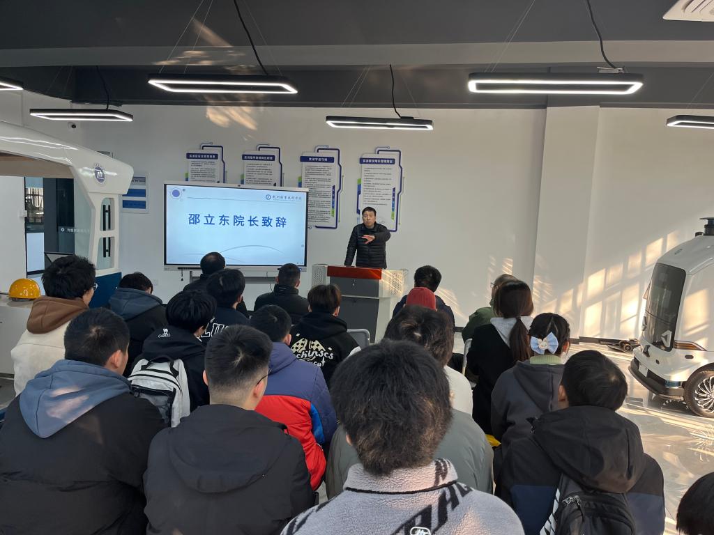 邵立东在致辞中表示,“吉智送”无人驾驶快递车是吉利汽车学院师生在智能交通领域的一项重要研究成果,这款车的问世为师生打通了校园“最后一公里”,助力安全、有序、便捷的智慧校园形成,“科”与“教”融汇,为职业教育发展注入新动能。同时也提出,无人驾驶快递车启用要确保安全与平稳,加强管理与运维,聚焦提升与创新,不断优化“吉智送”的性能,积极在无人驾驶应用领域谋篇布局。