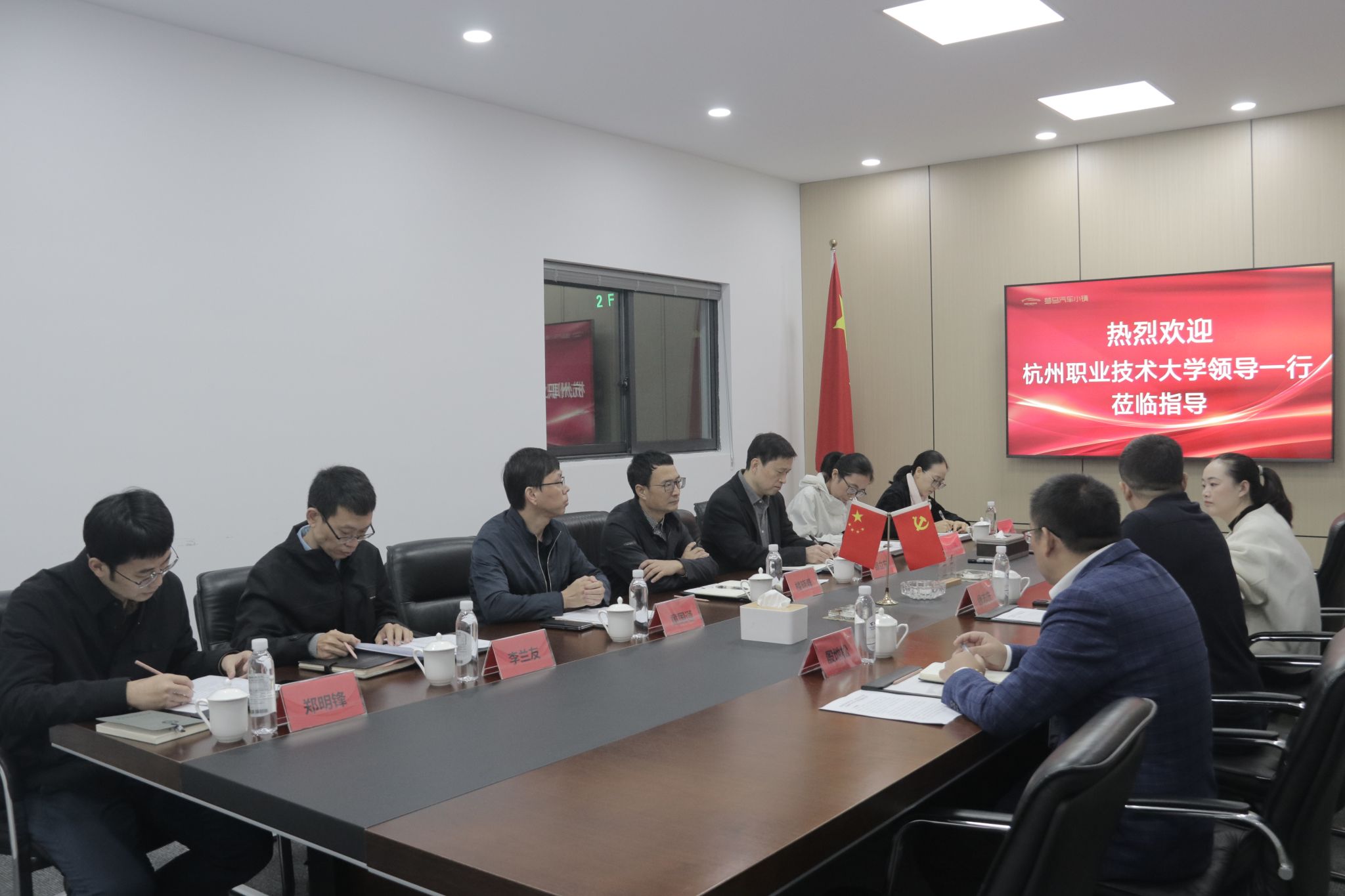 座谈交流环节,缪志庆对我校一行的到访表示热烈欢迎,并充分肯定了学校在高技能人才培养和校企协同育人方面的成效。他表示,期待能与杭职大共同搭建现代产业学院平台和创新载体,为小镇及区域汽车产业发展提供坚实的人才支撑和智力支持。