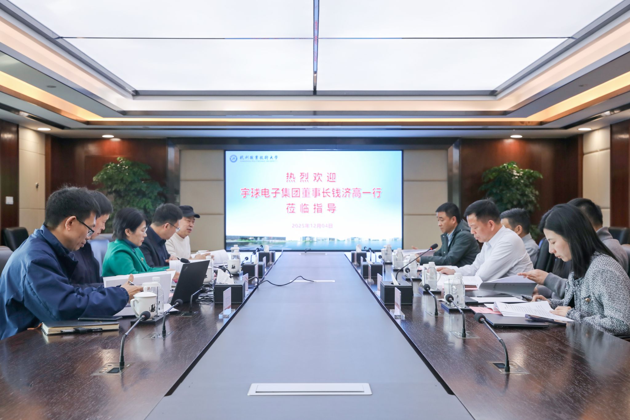 12月4日,东莞宇球电子股份有限公司董事长钱济高率核心团队一行来校开展合作交流,双方就共建“杭职大宇球智能车联研究院”进行深入研讨,校党委委员、副校长邓劲莲,广东宇球智能车联科技有限公司总经理徐洋,副总经理施旭晨、翁微妮、章林出席座谈会。