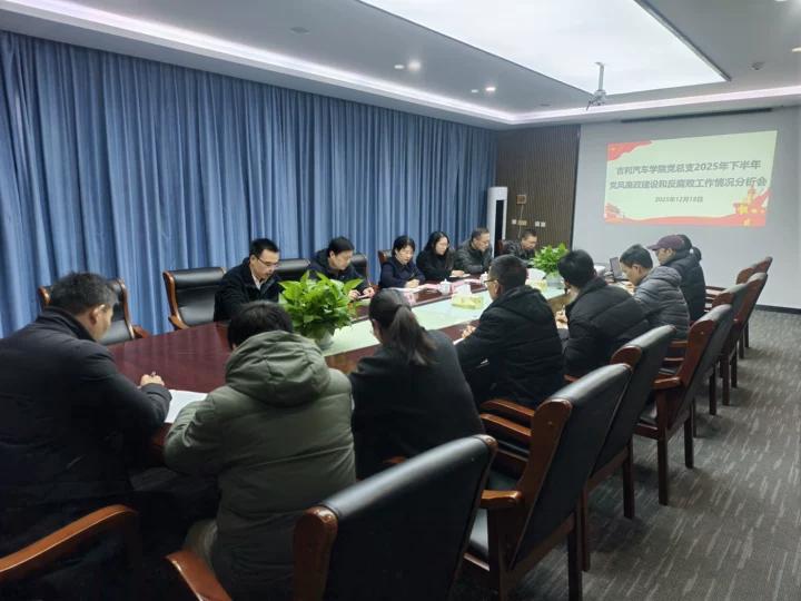 12月18日下午,吉利汽车学院党总支在2409召开2025年下半年党风廉政建设和反腐败工作情况分析会。校党委委员、副校长邓劲莲,校纪委办教师陈柳媛到会指导,吉利汽车学院班子成员、特约监督员及全体中层参加会议。