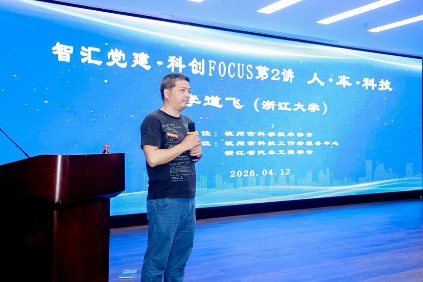 2026年4月12日下午,吉利汽车学院第二党支部开展树立和践行正确政绩观学习教育活动,坚持 “民生为大、服务师生”作为工作的出发点和落脚点,由支部书记李兰友老师带队,赴杭州市科技交流馆参与智汇党建·科创FOCUS第2讲活动,听取了浙江大学能源工程学院车辆工程研究所副教授、博士生导师李道飞作的“人·车·科技”专题报告,我校师生积极参与,收获颇丰。