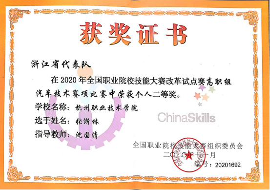 图3 汽车检测与维修技术专业学生在全国技能大赛中获奖