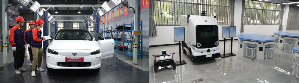 (2)教学条件国内一流:依托国家级“新能源汽车技术生产性实训基地”建有智能感知、线控底盘、虚拟仿真等16个专业实训室,校内实训场地超8000平米,设备投入4500余万元,为教学、实训、考证、竞赛提供坚实保障。